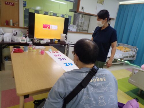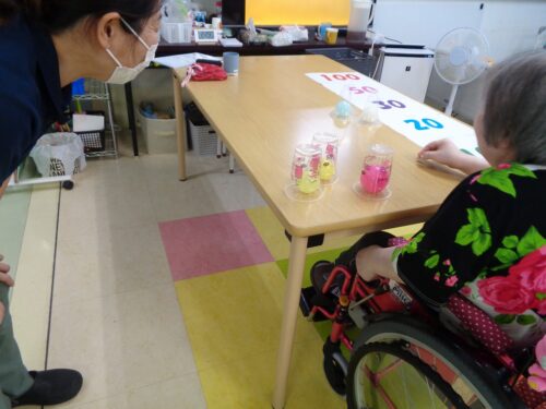 今週は、月曜日がスポーツの日ということでテーブル上でカーリングを行いました。