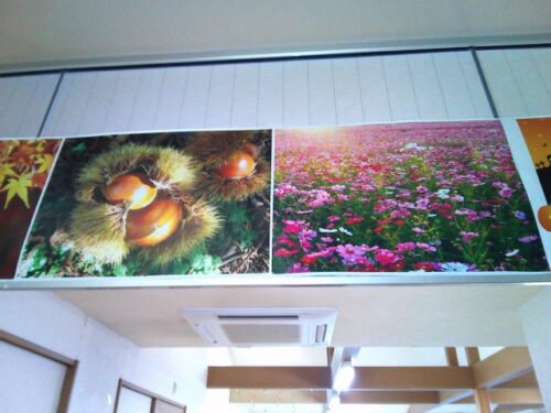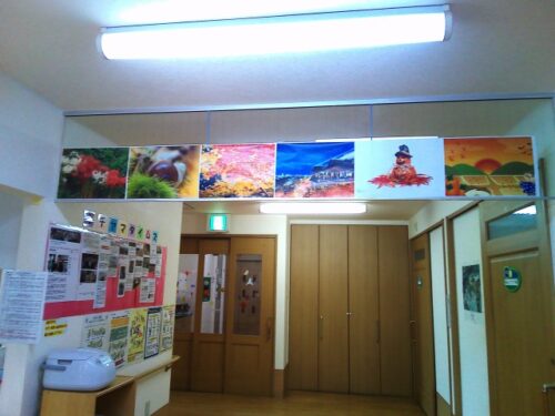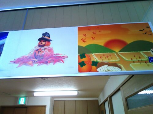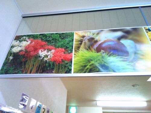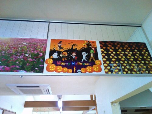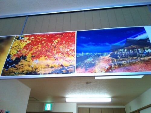 天井の高い所に掲示しました。