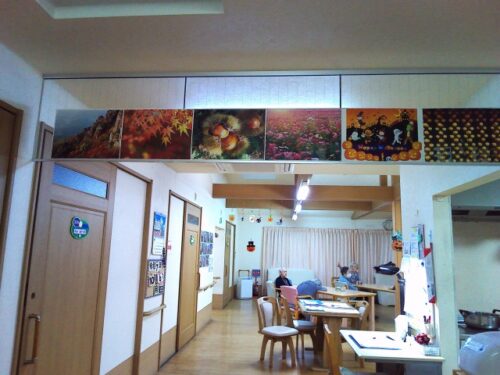入居者様と一緒に、日本の季節の映像を眺めながら、「あっ!これ?干し柿ね!!」など思わず「昭和の良き時代」を彷彿させるような瞬間でした。