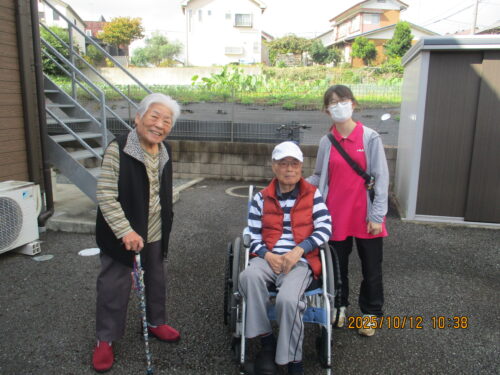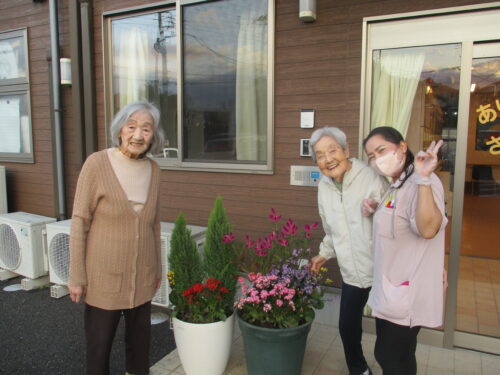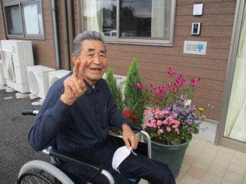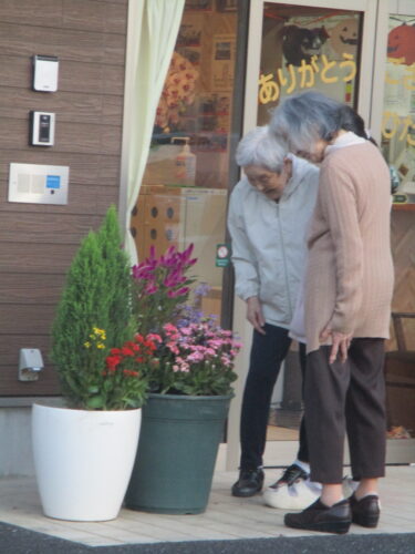 花壇の花や畑の作物を眺めながら、のどかなひと時を楽しまれています🎶