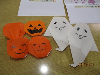 まずは折り紙✨定番ではありますが、カボチャやお化けを作りました