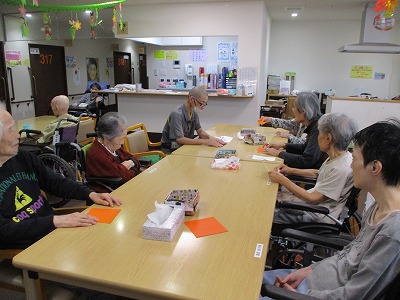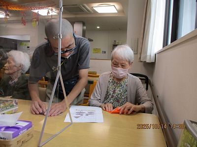 今月のレクリエーションはハロウィンにちなんだものを考えております(゜-゜)