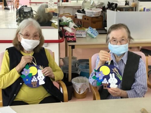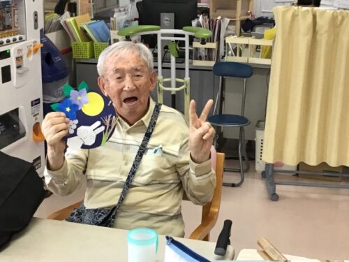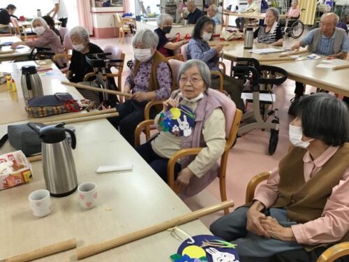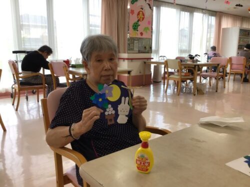 今回はかわいいウサギを折り紙で折って頂き、お顔を書いて頂きました😁
