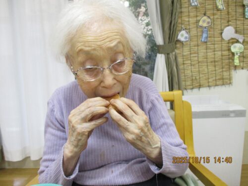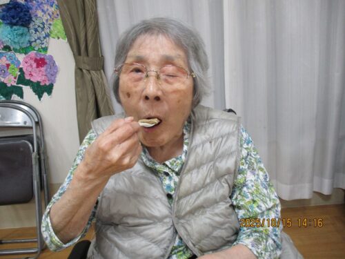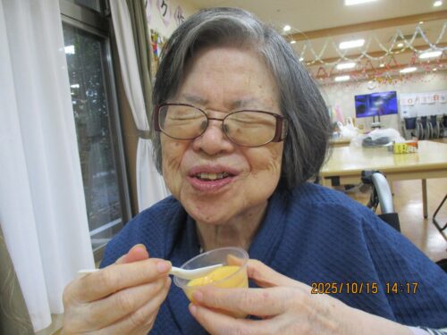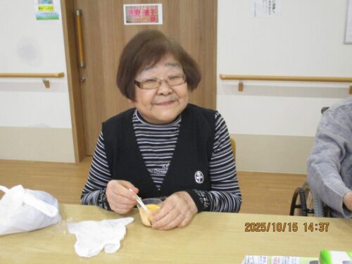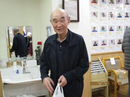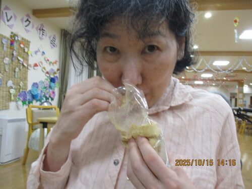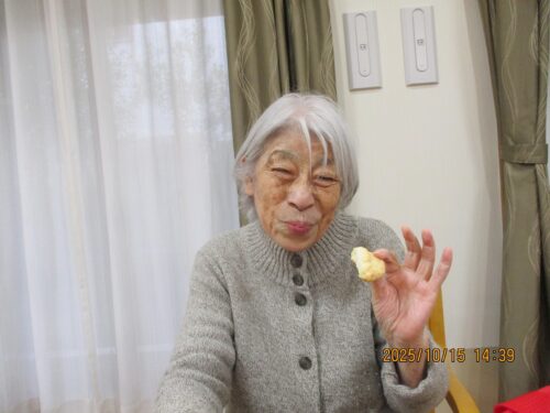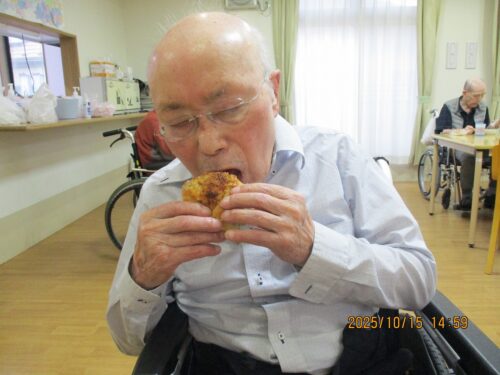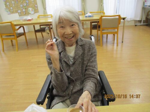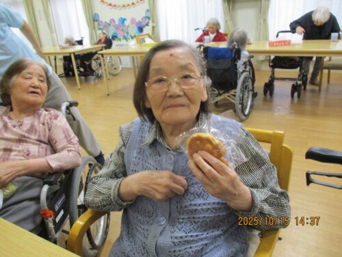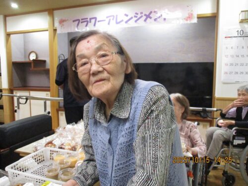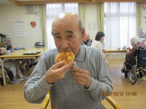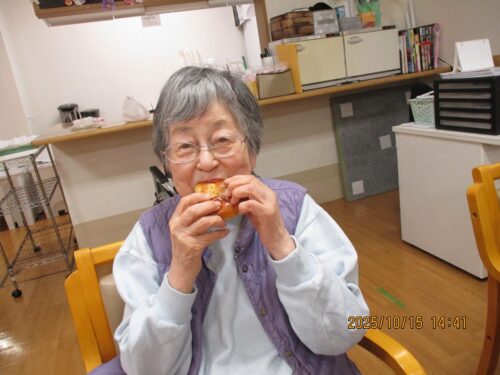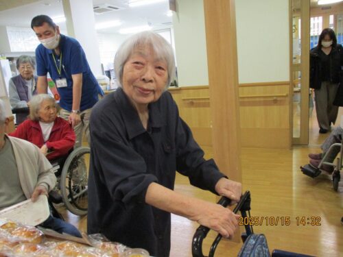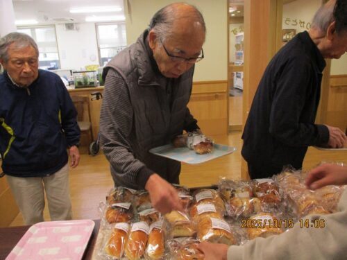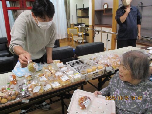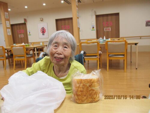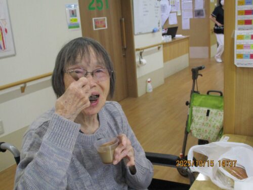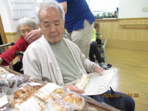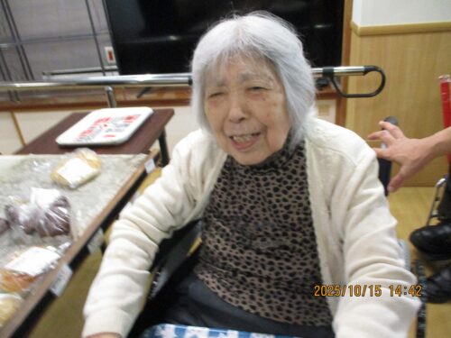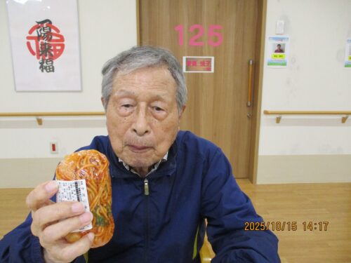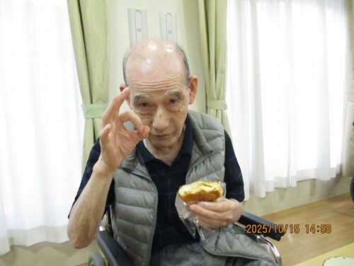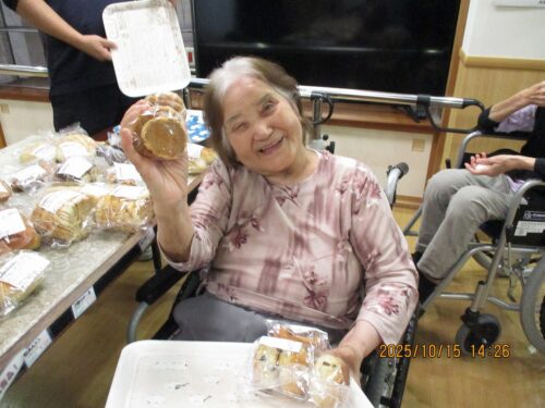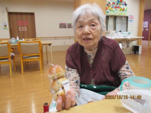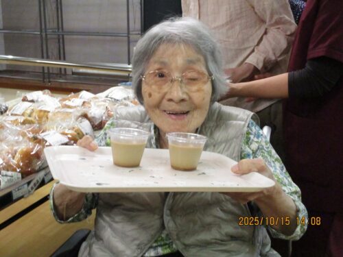 買い物後の入居者さま♬ パンや、プリンや色々買っていましたね。