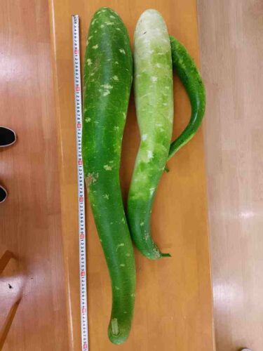 さわやか柏館 収穫しました (さわやか柏館 千葉県柏市介護付き有料老人ホーム) 2025-10-16 2025-10-16 六月に植えた中庭の植物が育ち、収穫の時期になりました。 ひょうたんはかなりの大きさになり、かぼちゃも大きくなりました。 来月のためにサツマイモはまだ収穫しませんが、地面からちらっとみえる姿で大きくなっているのがわかりました!