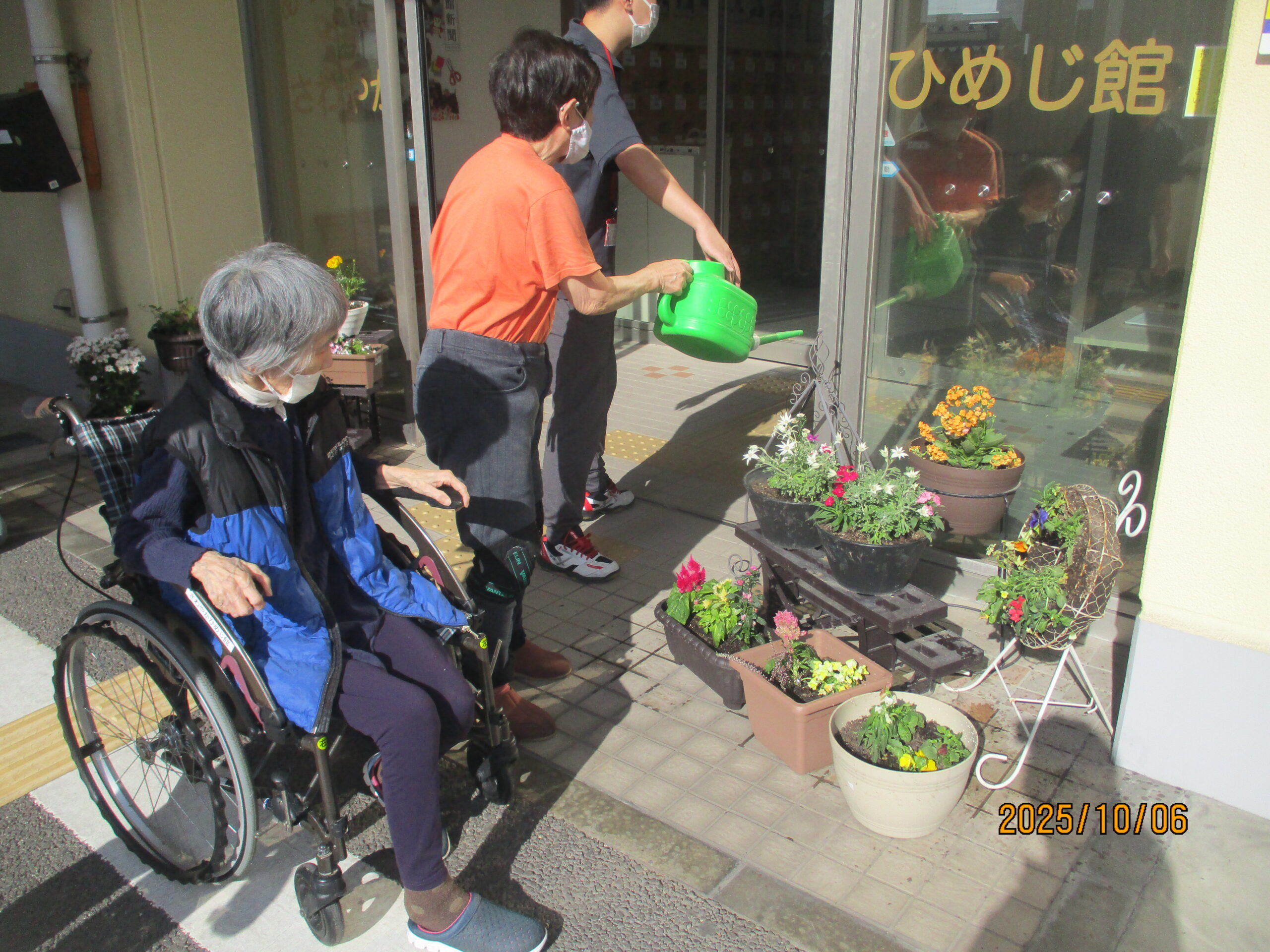 さわやかひめじ館 花壇に水やりをしました 2025-10-16 2025-10-16 利用者様と一緒に玄関の花壇の水やりをしました🌺🌺 きれいな花が咲いていて、皆様とても喜ばれていました(^^♪ 本日のブログ担当は中島でした。