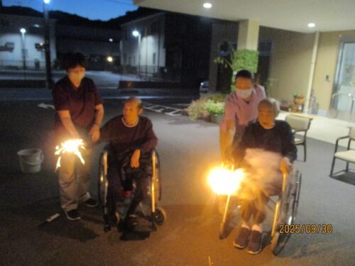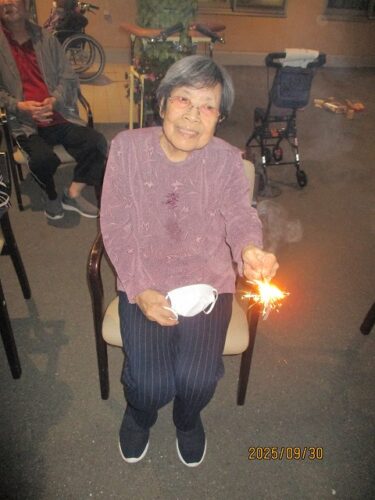 さわやかあおい館 花火レク【さわやかあおい館】 2025-10-17 2025-10-17 こんにちは!さわやかあおい館です!! 10月も半ばになり、少しずつ秋めいてきました。 あおい館では9月の終わりに花火レクを開催。 寒暖差が激しい日が多くなりました。 体調管理をしっかり行っていきましょう!! 🍒わたなべ🍒