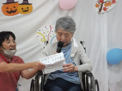 さわやか行橋館 ★敬老会をしました③・・・行橋館★ 2025-10-17 2025-10-17 こんにちは😊 さわやか行橋館です 先日の敬老会の続きを掲載します😀 最後に終わりのご挨拶をしていただきました!! とても喜んで頂けてよかったです🤩💕 松田