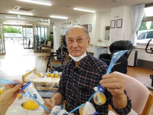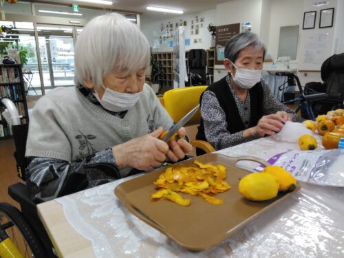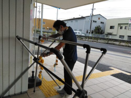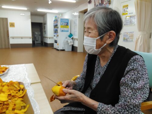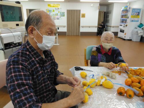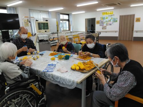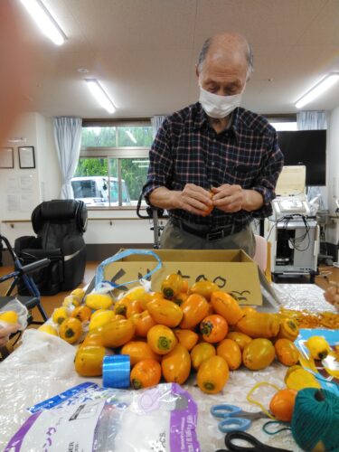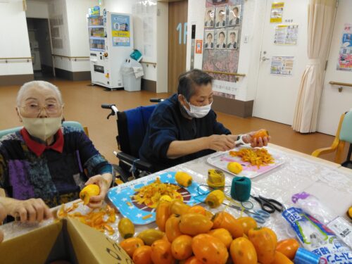前回活躍された入居者様とで、今日も干し柿を作りました。