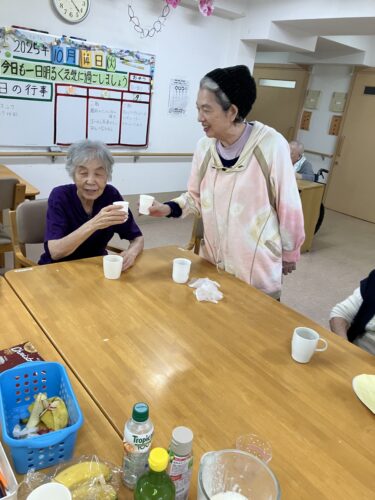 出来立てのミックスジュースは皆様、美味しいわあと喜んでいただきました(*^▽^*)