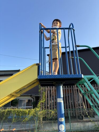ぼくは滑り台の上から夕焼けを見よう‼️