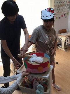 棒を持ってくるくる回して綿菓子を作っていきます😊