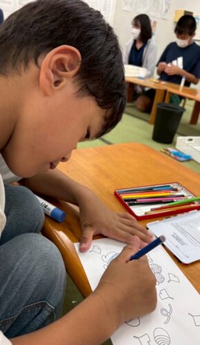 リス、どんぐり、イチョウの葉の塗り絵を塗って画用紙に貼ると完成です。