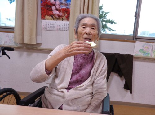 「なんかお煎餅みたいな形、食べちゃおうかな😚」