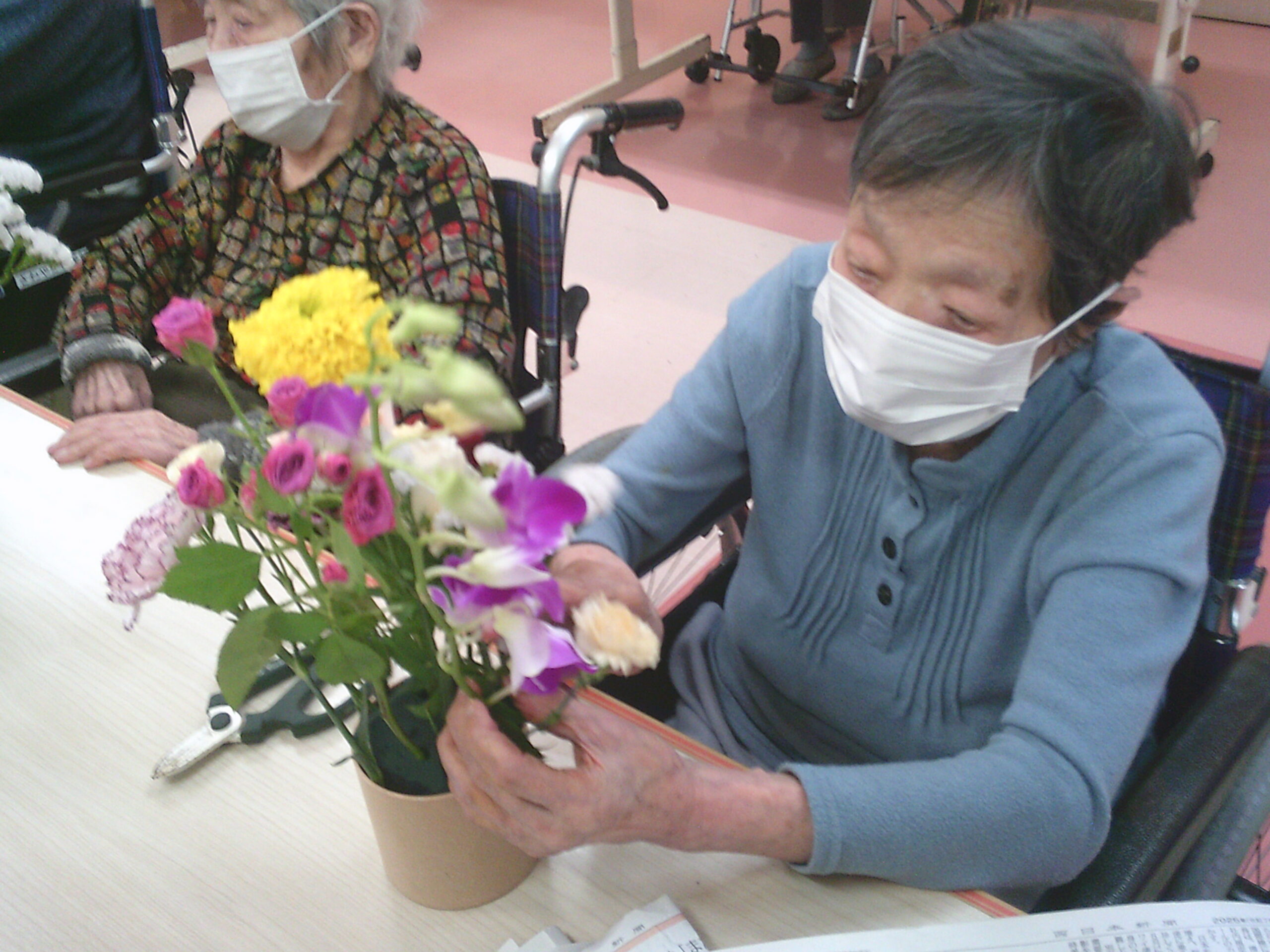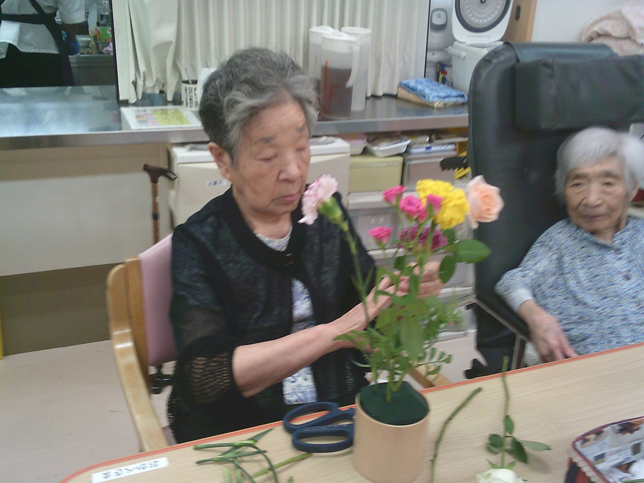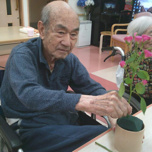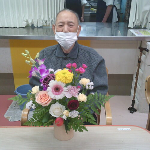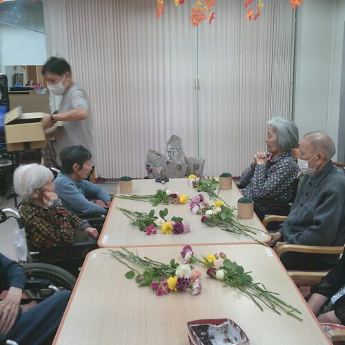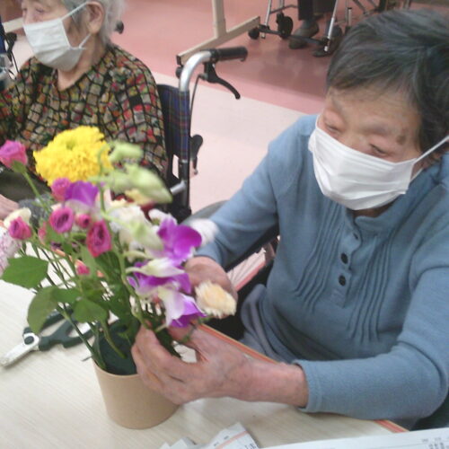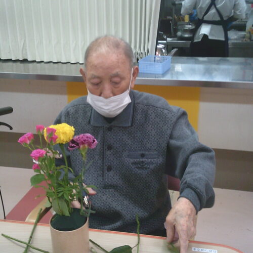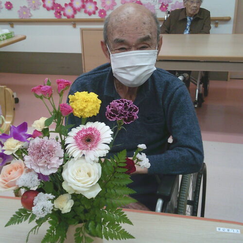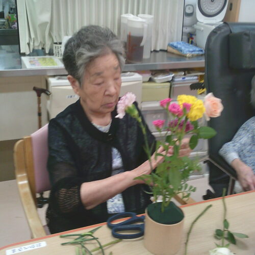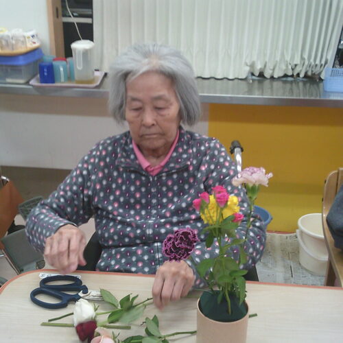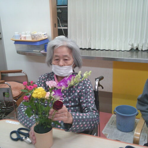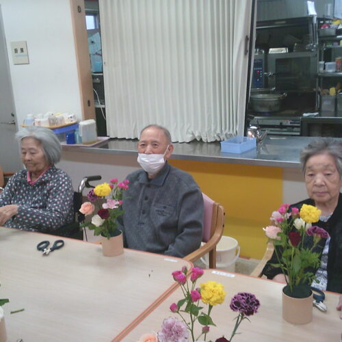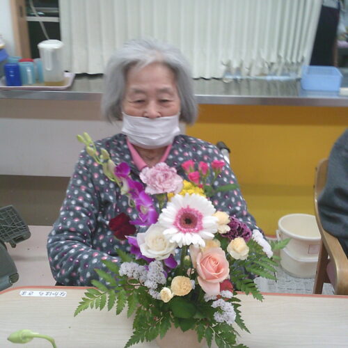 今月も先生に教えていただきながら素敵な生け花が完成していました
