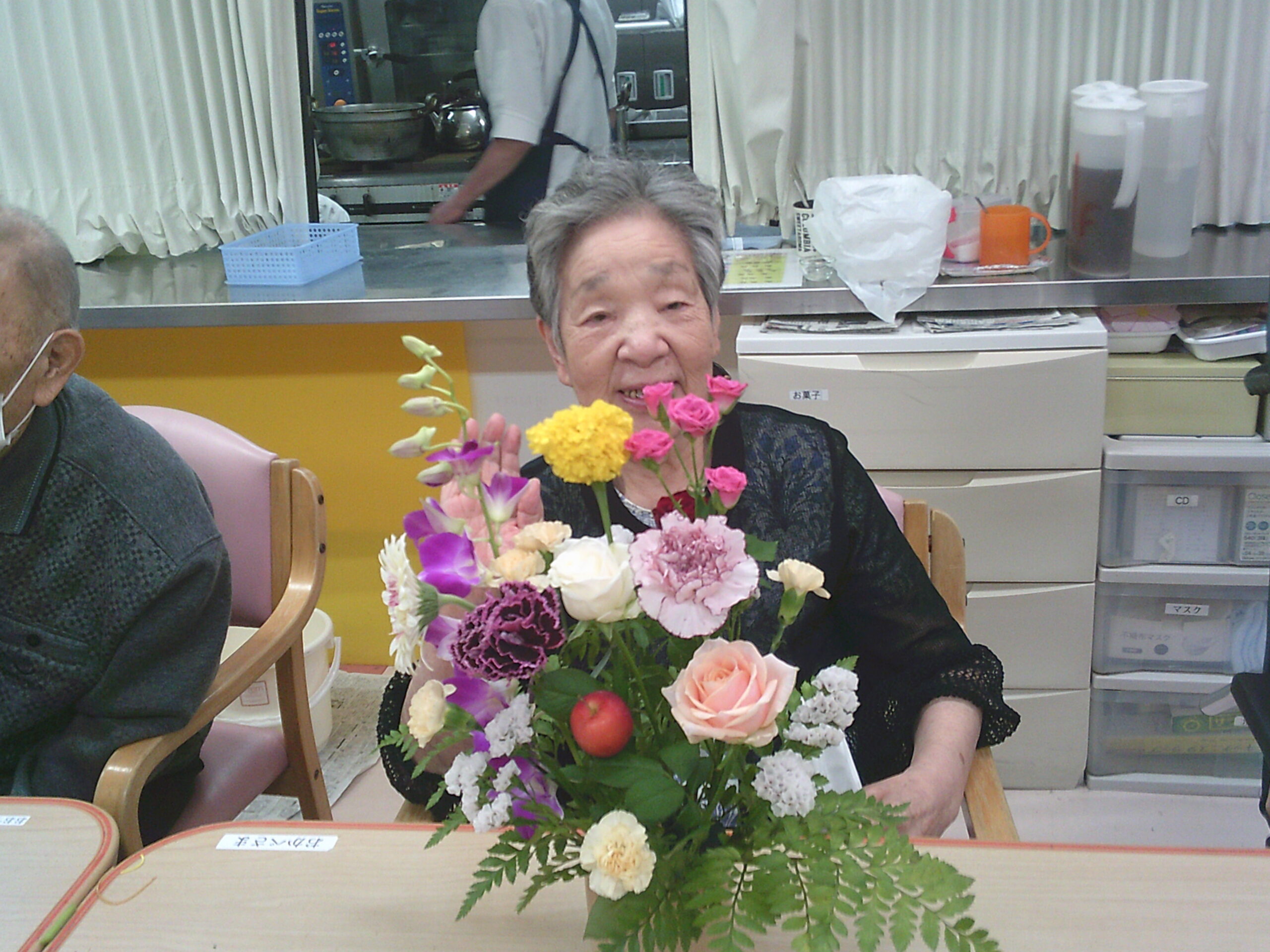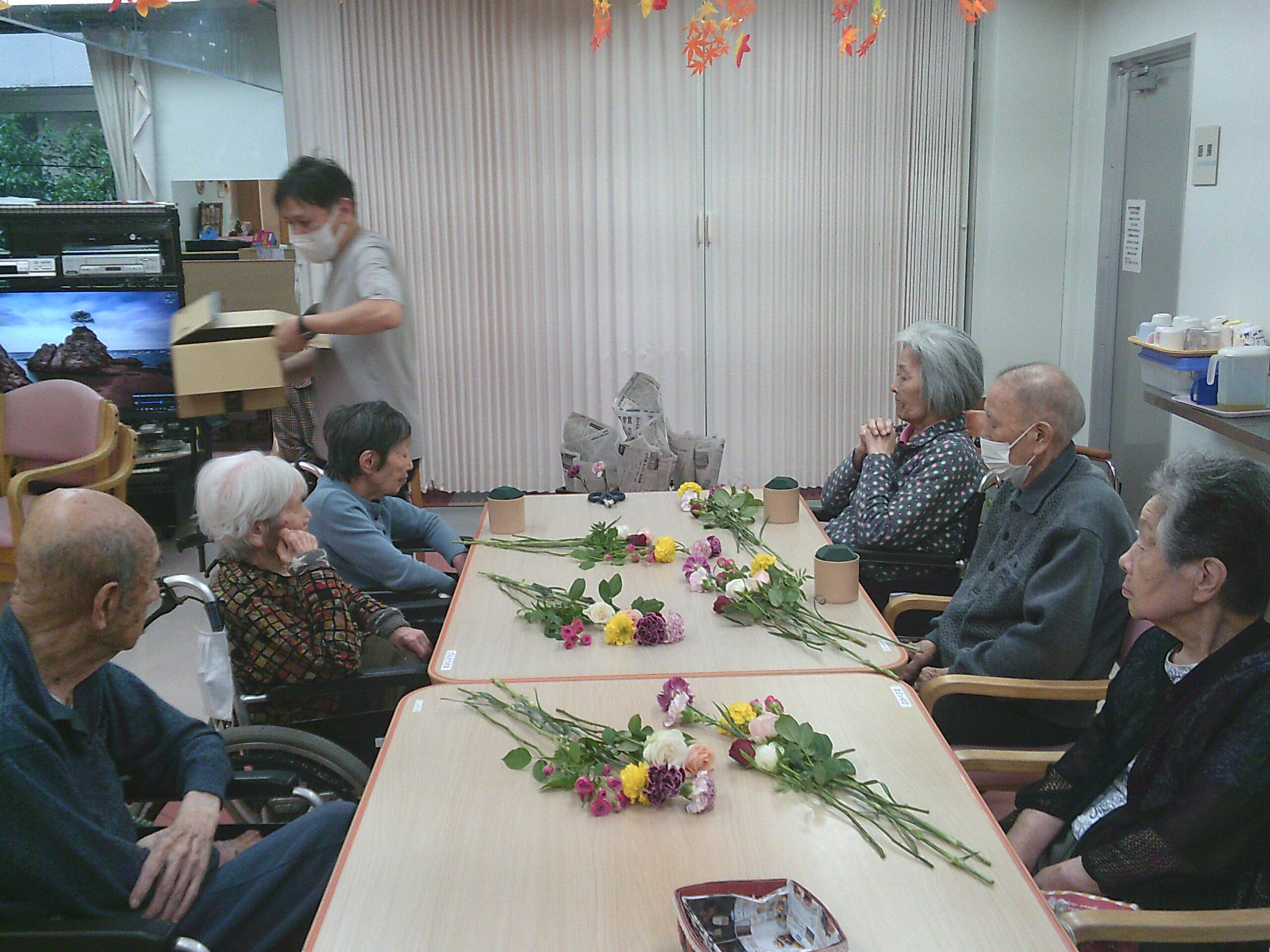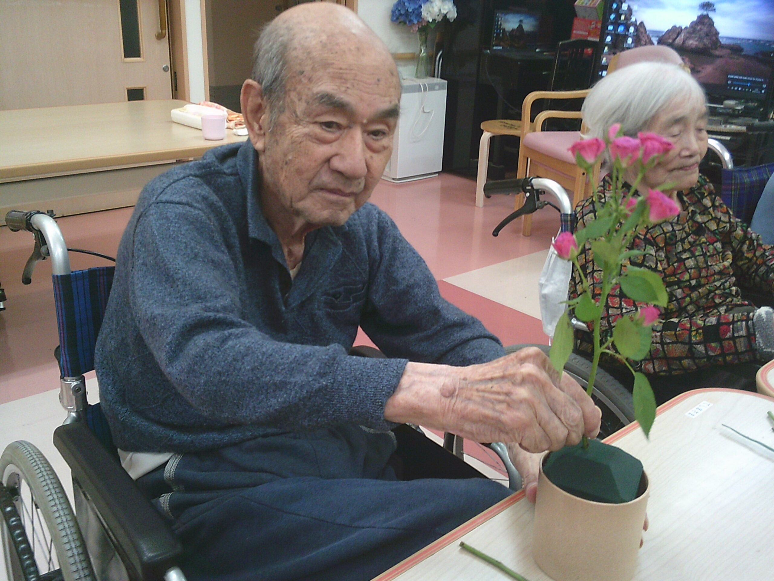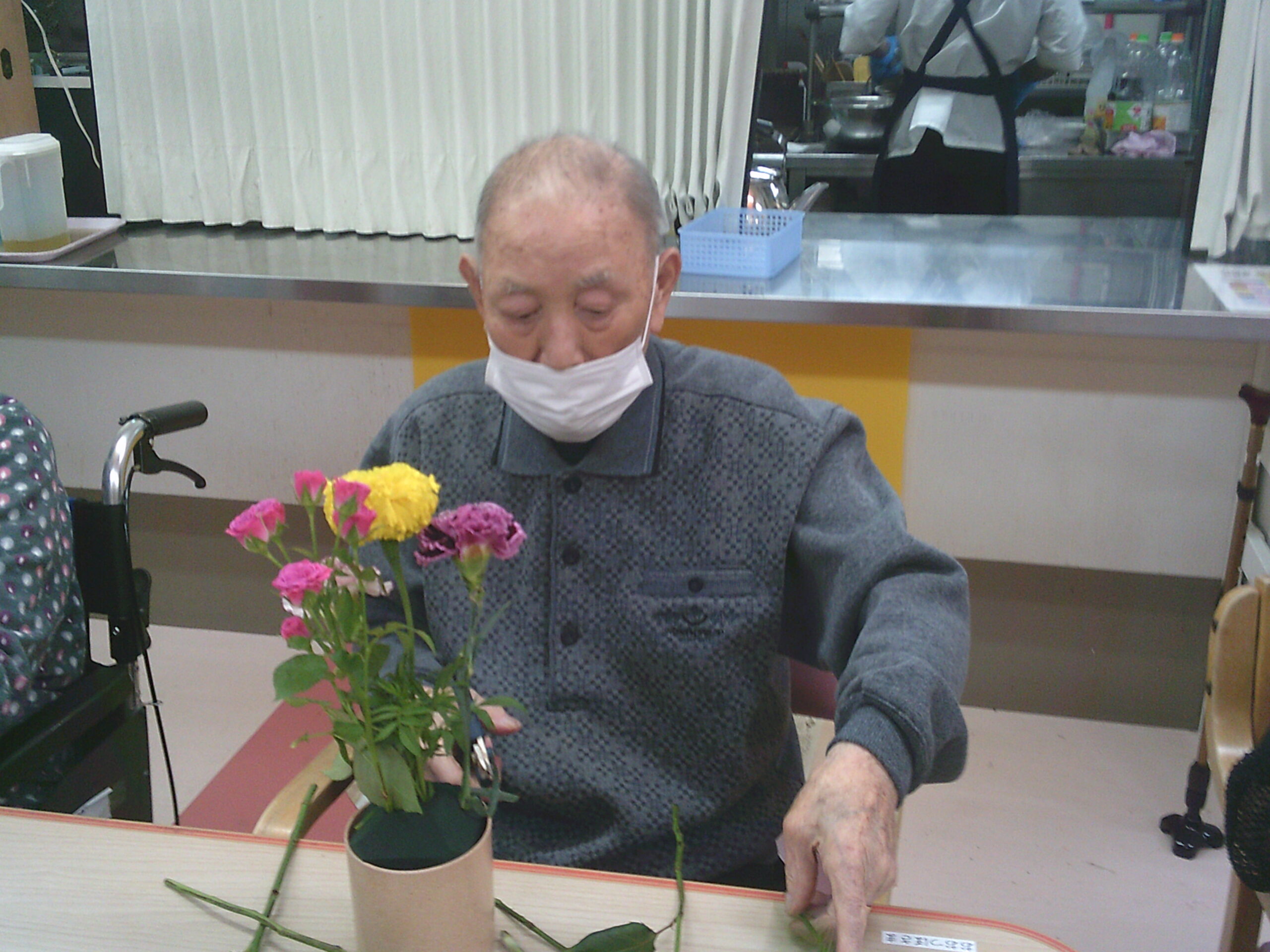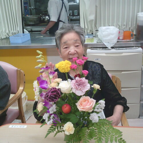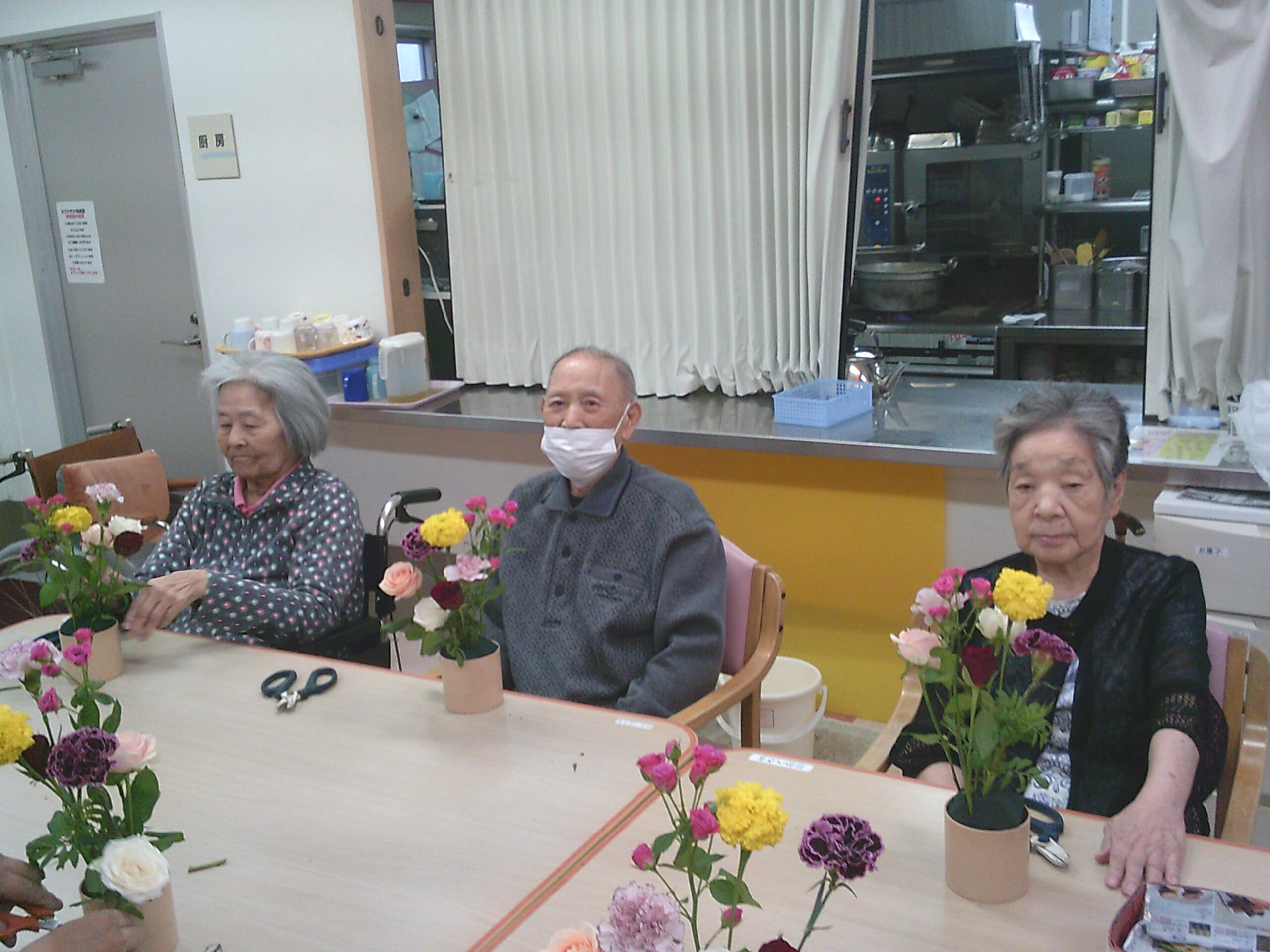 今月も先生に教えていただきながら素敵な生け花が完成していました