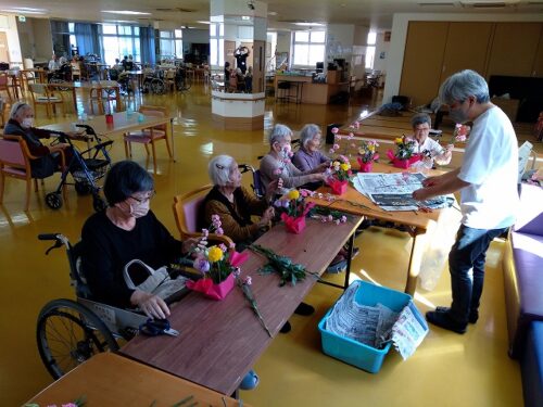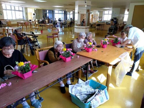 さわやか和布刈館 フラワーアレンジメント 2024-08-02 2024-08-06 みなさまこんにちは 今日のフラワーアレンジメントは、「夏のお花」をご用意しました。 かわいい感じのお花がいっぱいありますね。 沢山お花があるので、お花を生ける場所が難しいようです。 はい!!! 完成です。 来月はどのようなお花がきますでしょうか?