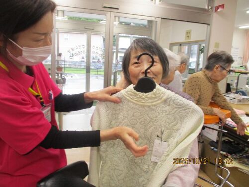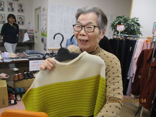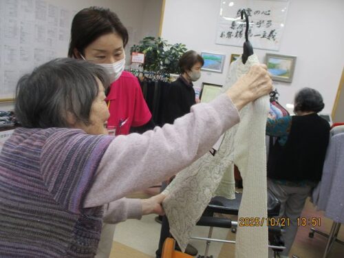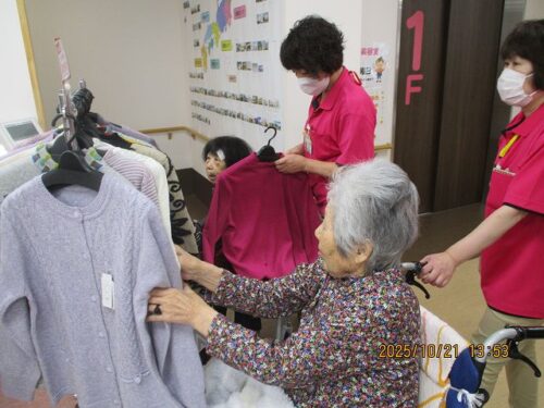 さわやかさくらのもり お買い物【さわやかさくらのもり】 2025-10-21 2025-10-21 こんにちは!さくらのもりです。 あいにくの天気で肌寒いですが皆様お元気です。 さて、本日は油屋衣料店様が来館され皆様お買い物です。 早速購入された衣類を着用されている方もおり、皆様楽しまれておりました! さくらのもり今野がお届けしました。