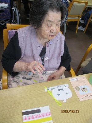 来週もハロウィンにちなんだレクリエーションを考えております(⌒∇⌒)