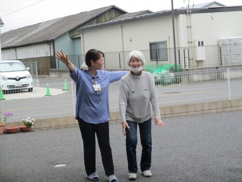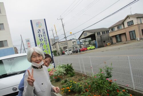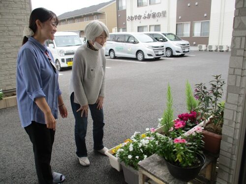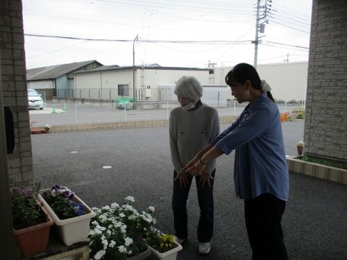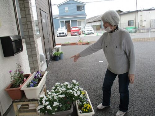 『これが私の植えたお花なのよ、こっちは○○さんね』