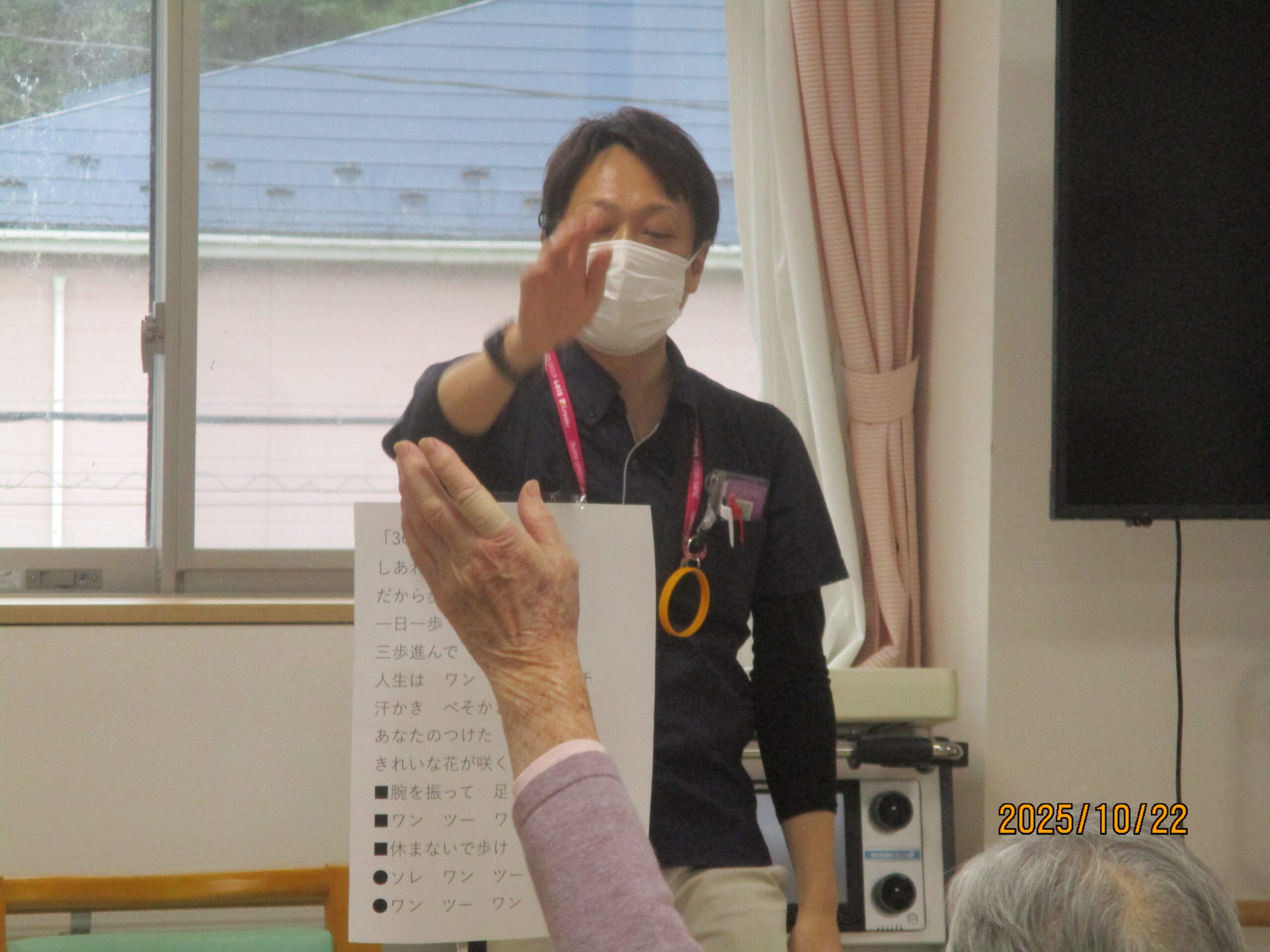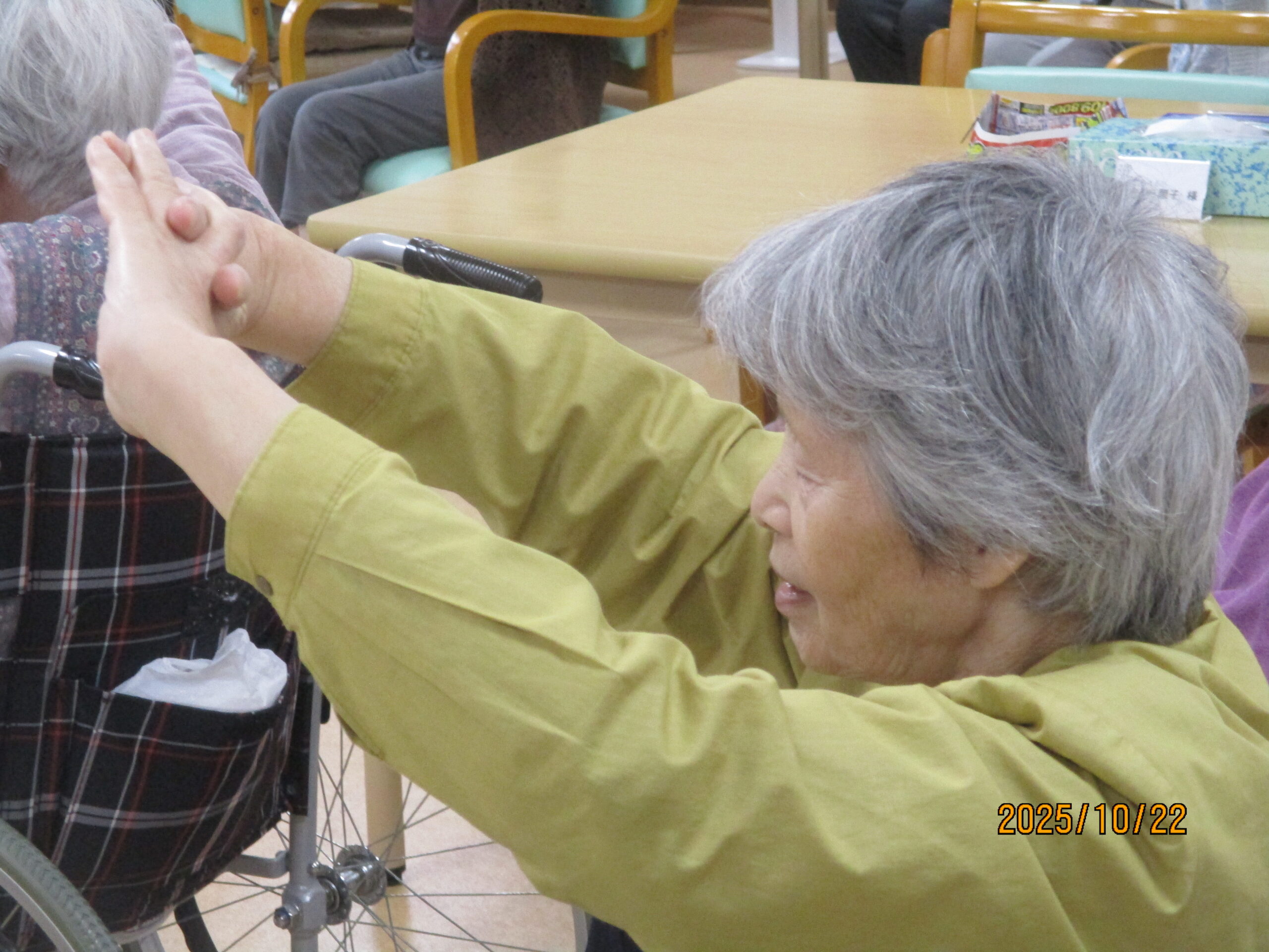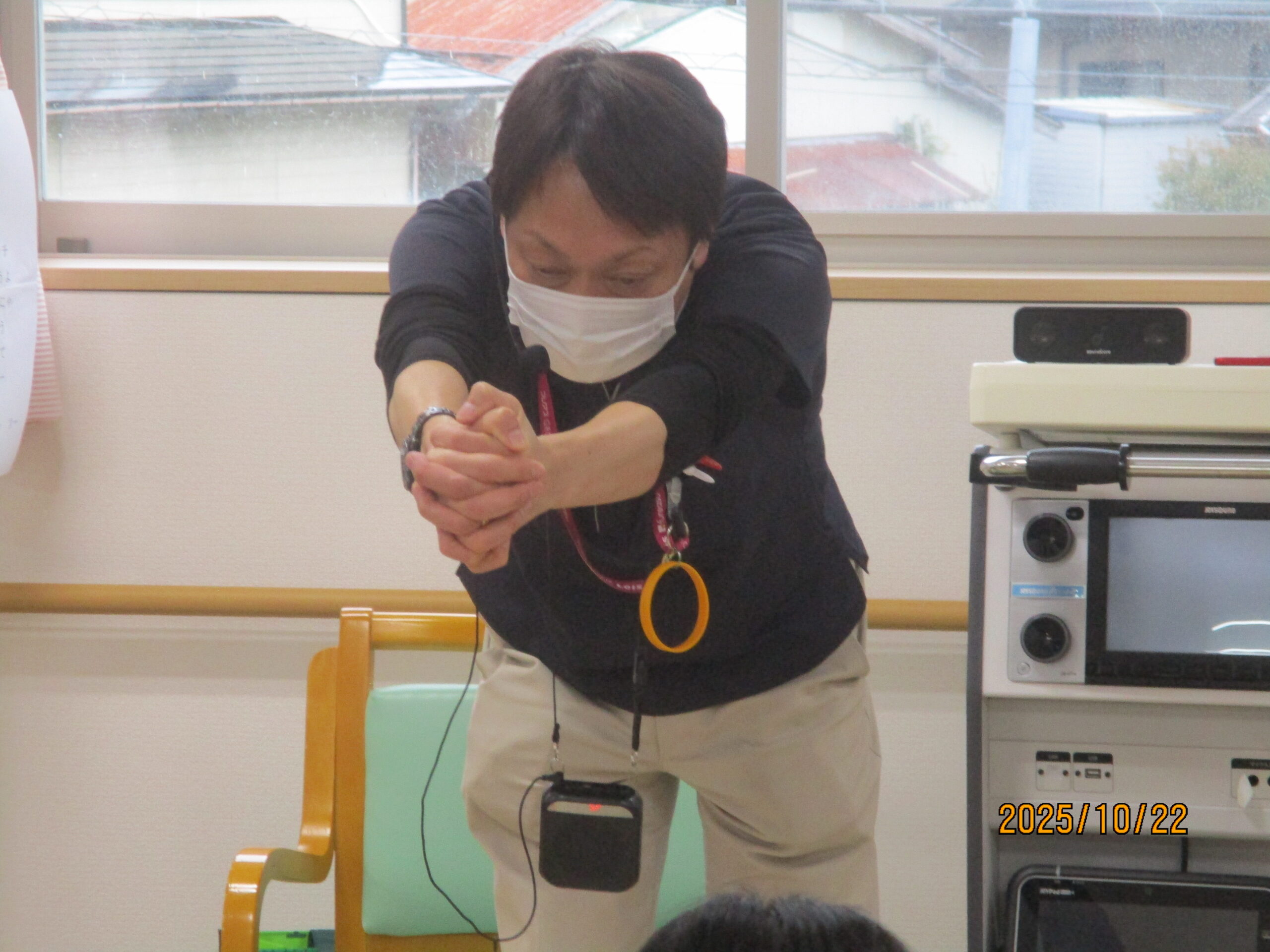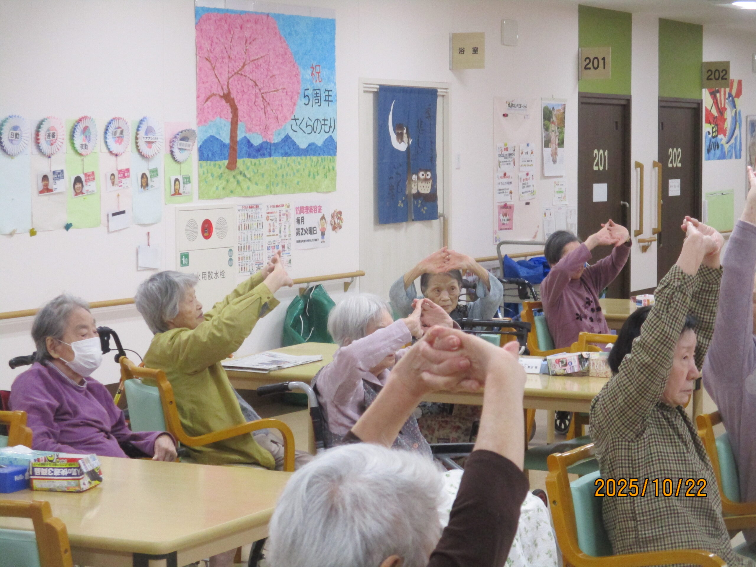 皆さん、こんにちは。10月ももう少しで終わりで段々寒くなってきましたね。今日は午後から2階でフレアス健康体操を行いましたのでその様子を見ていきましょう。