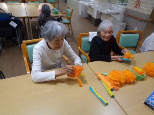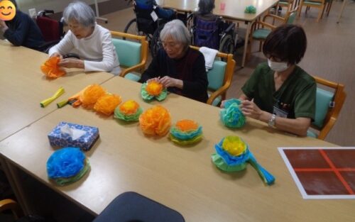 さわやかおけがわ館 さわやかおけがわ館 10月23日 2025-10-23 2025-10-23 こんにちは さわやかおけがわ館です。 今日は皆様で飾りつけに使用するお花を作成していただきました! 手が器用で一つ一つ丁寧に作られておりました😄