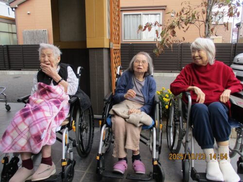 玄関先では花壇のお花が綺麗に咲いています🌼