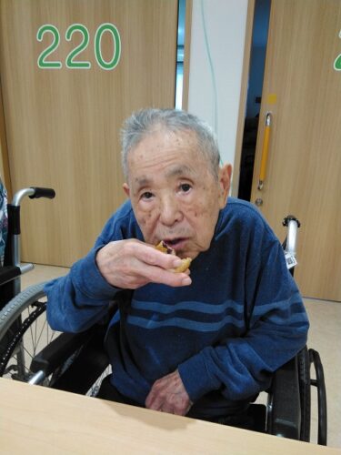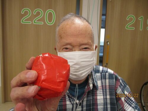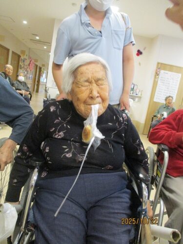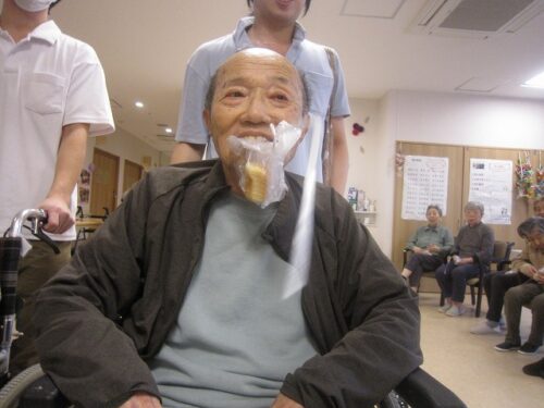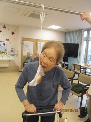 次は、あおい館ミニミニ運動会の恒例競技となりつつある「パン食い競争」