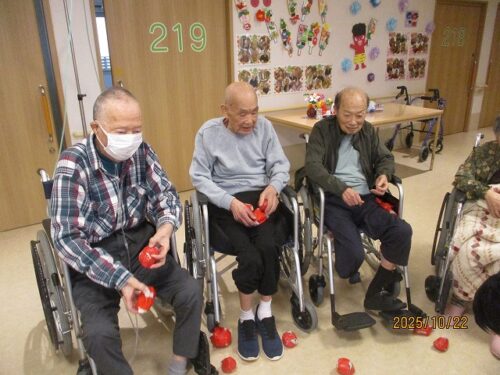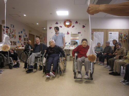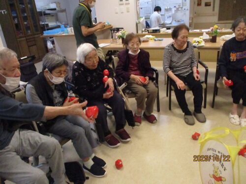 2チームに分かれて競い合いました!どちらがたくさん玉を入れられるでしょうか!!