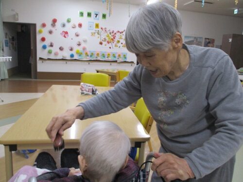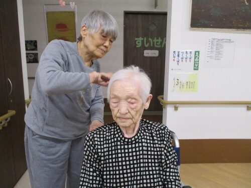 さわやかグループホーム むろらん 朝の一コマ 2025-10-25 2025-10-23 この日の朝は、ふとフロアを見ると起きている方の髪をとかして頂いていたので思わずパシャリ‼ ありがとうねと喜ばれており、職員一同ほっこりしました!