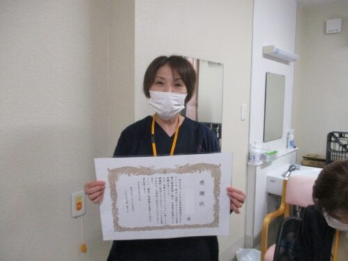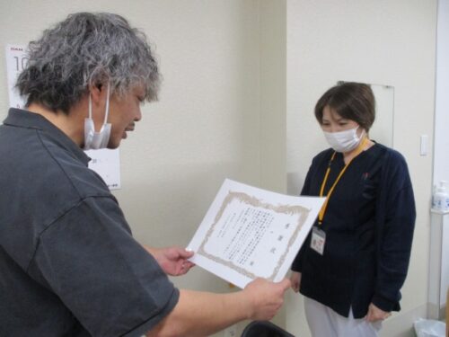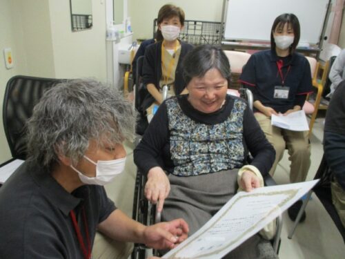 入居者様、職員1名ずつ感謝状をお渡ししました⭐