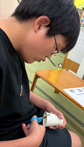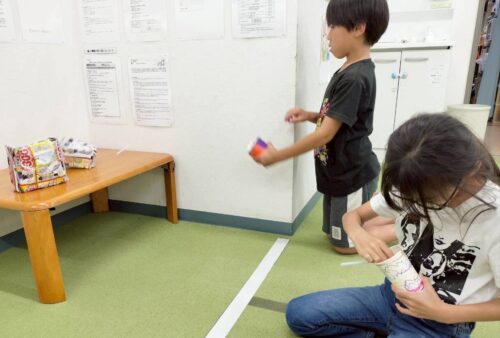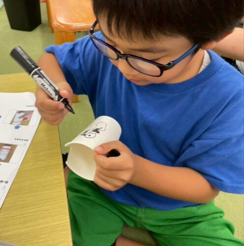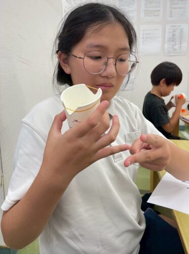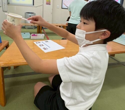 紙コップで弓を作り、ストローの矢を飛ばして遊びました🏹