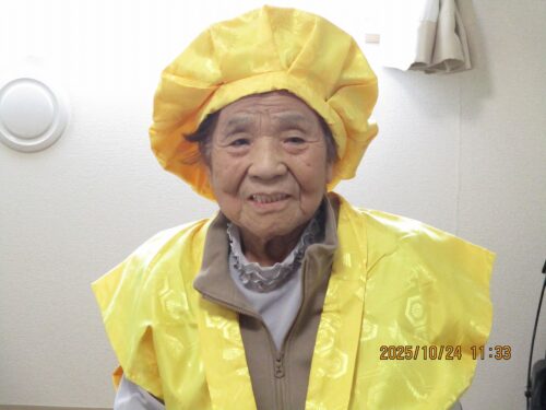 黄色のちゃんちゃんこ、頭巾が素敵です。