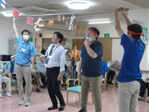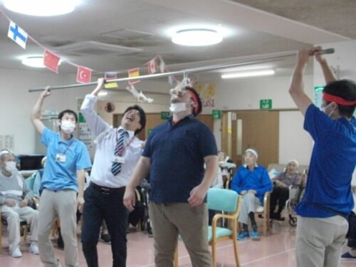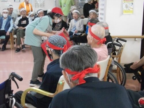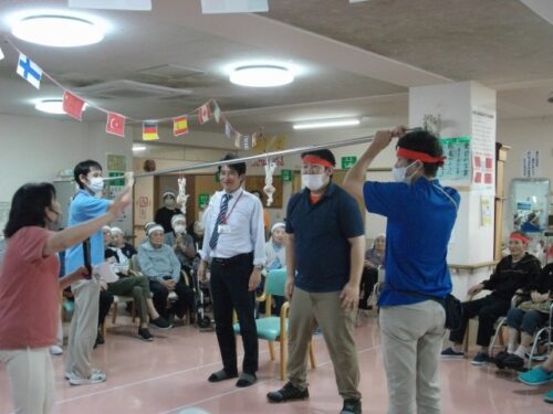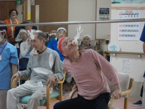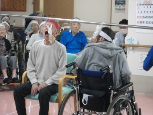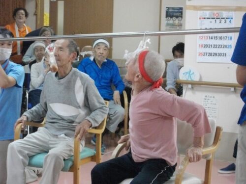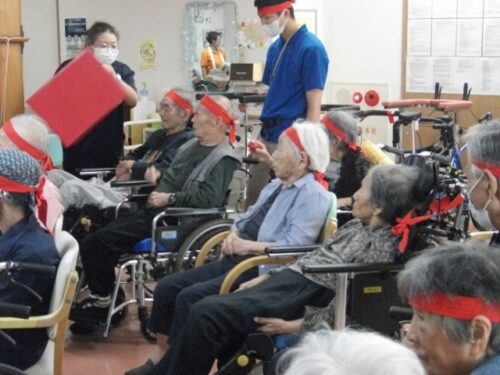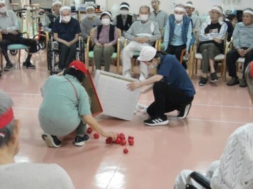 みなさん1球ずつ球を持ち、箱に投げ入れるという競技です