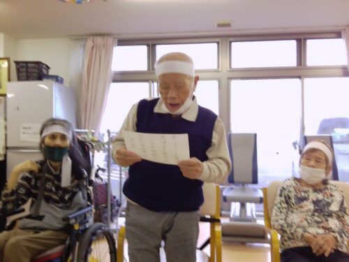 そして、選手宣誓です。毎日日替わりで利用者様が大役を担いました!
