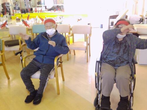 利用者様も「いち、に、さん、し」と声をかけながら体操されていました。