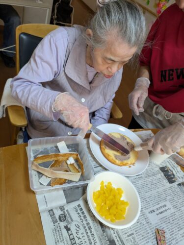 さわやかグループホームあゆみ ☆BBQとお誕生日会☆ 2025-10-20 2025-10-24 外でBBQをしているうちに 手分けしてケーキを作りました。 皆さん器用に飾り付けを進めてくれました。 この笑顔^^ ケーキの隙間からピース^^ かわいいですね。