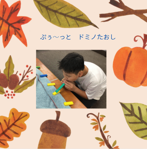 口をすぼめて小さなストローに息を吹き込み~ドミノを倒す🔥
