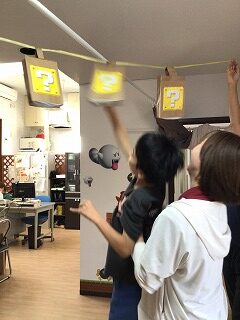 中からマリオのキャラクターのイラストがひらひらと出落ちてくる仕組みに😊