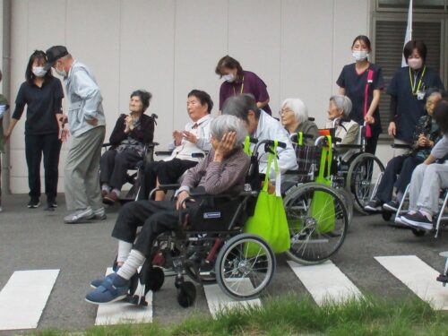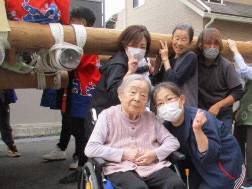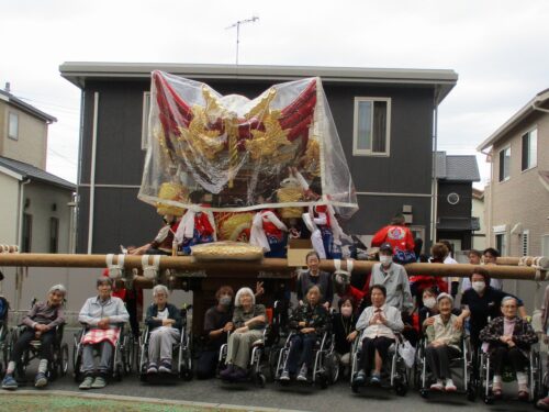 立派な屋台を近くで見て、入居者様もくぎづけ👀