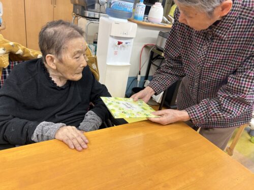 いつも仲のいい方から「おめでとう」と言いながらカードを受け取られて「ありがとう。」と言われメッセージをしばらく見られていました。
