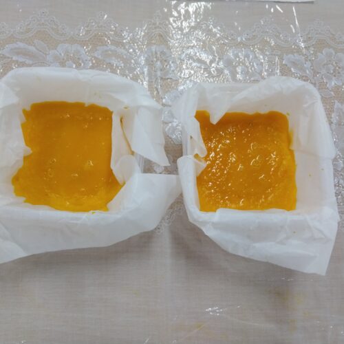 午前中にパンプキンケーキを作って、冷蔵庫で冷やします。