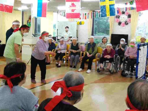 食欲の秋、読書の秋と並ぶスポーツの秋ということで、柏館の10月の季節イベントは運動会です。