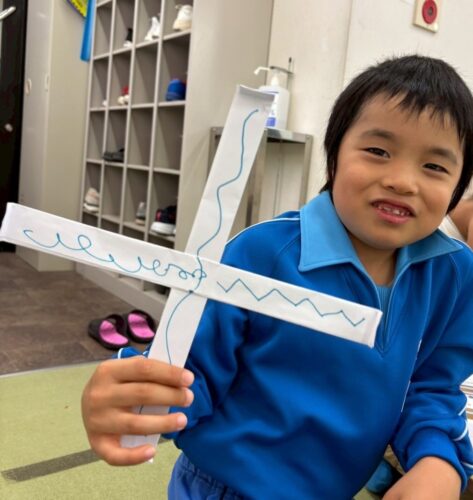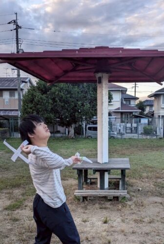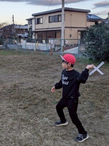 風の向きを見たり、よく飛ぶ方法を考えたりして遊びました。