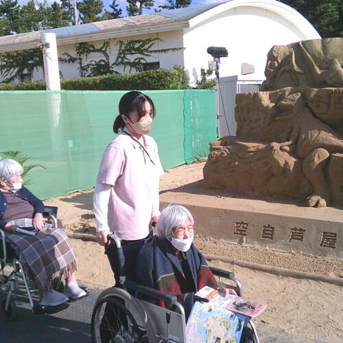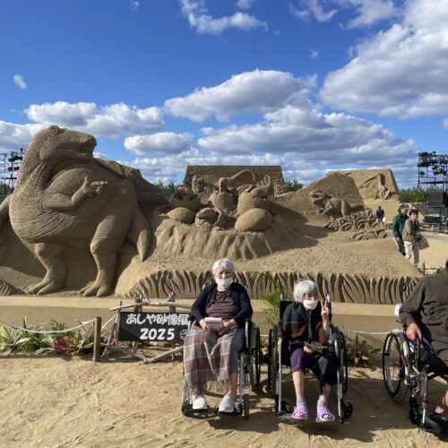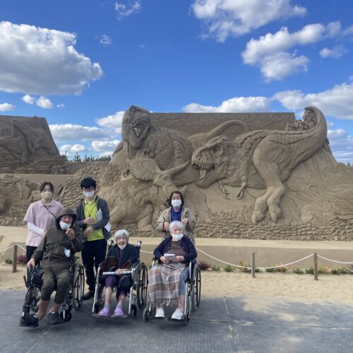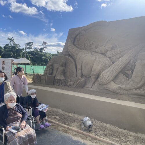天気にも恵まれ陽気に照らされながら迫力ある砂像に全員が驚嘆した様子で観覧していました