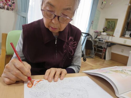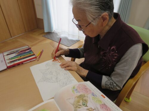 とても細かくて難しいぬり絵に挑戦なさってます。