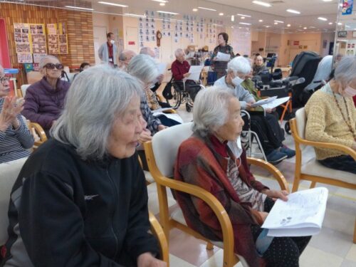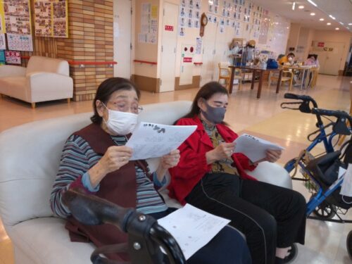 歌詞カードを作っていただき、ご入居者様にお配りしました