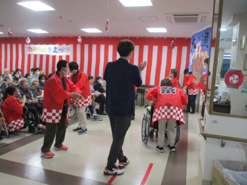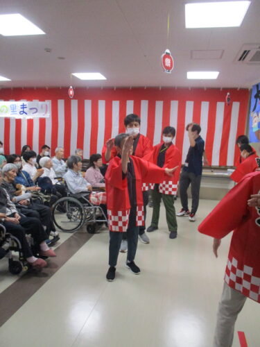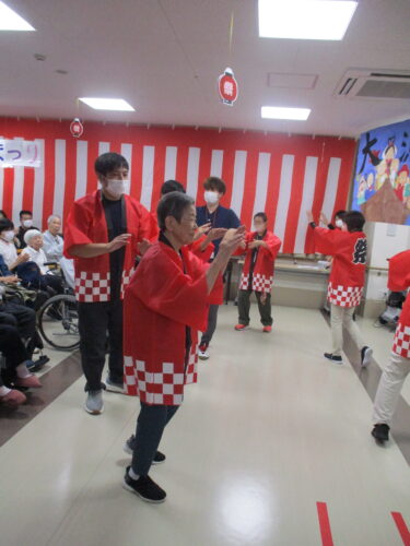 あまり踊り慣れていない職員も、プロの御入居者様を見ながらついていきます(∩´∀`)∩