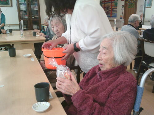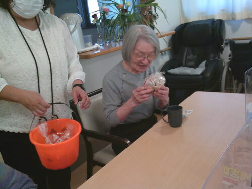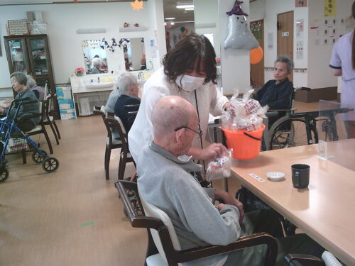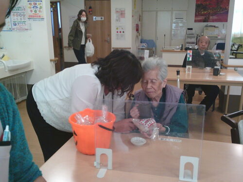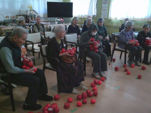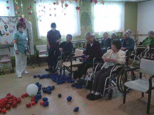 さわやかひだか館 みんなでハロウィーン🎃 2025-11-01 2025-10-30 「バルーンペタング🎈」 真ん中に置いてある風船目がけて… 自分のお手玉をより風船の近くに寄せて➰🔴 ゲームの後のご褒美です💕😊 皆さんに一つずつ✨ と~っても嬉しそうな✨笑顔をパチリ📸 さわやかひだか館ブログ担当😄