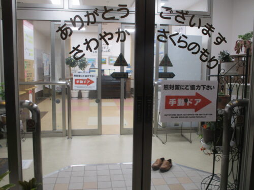 さくらのもり近辺でも出没しており、クマ対策として自動ドアを手動にしたり窓ガラスを覆うように車を配置したりと今できる安全対策を行っております。